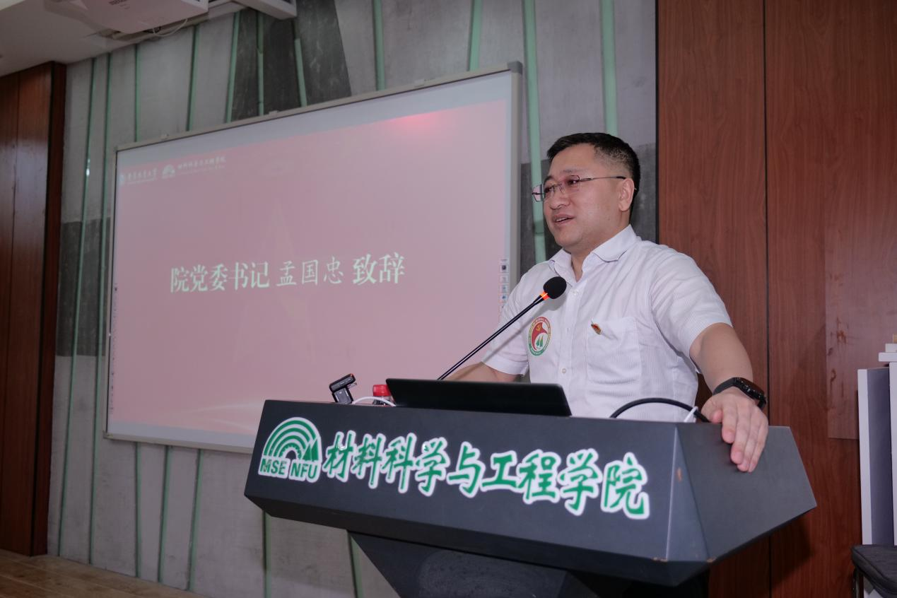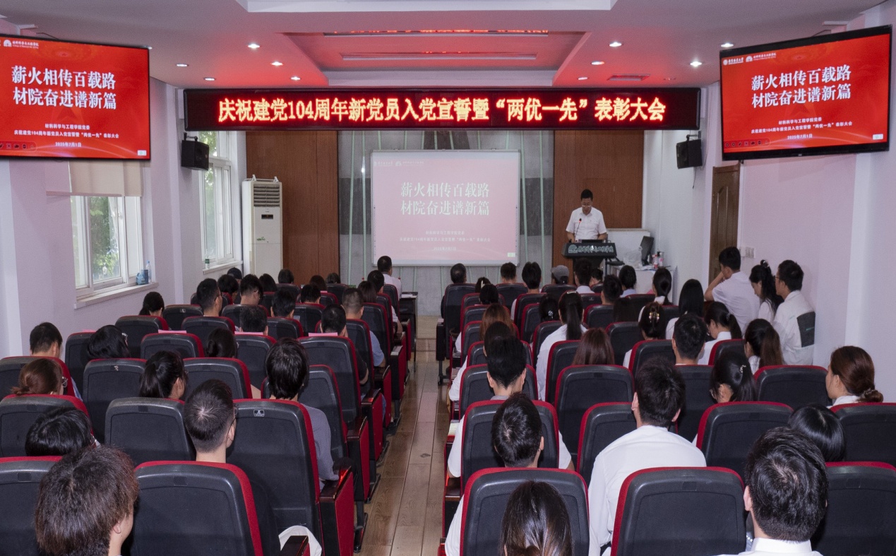 2025年7月1日,南京林业大学材料科学与工程学院党委庆祝中国共产党成立104周年新党员入党宣誓暨"两优一先"表彰大会在学院4211多媒体会议室隆重召开。全体院领导、党支部书记、院关工委负责人、老党员代表及师生党员齐聚一堂,共同回顾党的光辉历程,表彰先进典型,传承红色基因。校关工委负责同志也出席了本次活动。大会由学院党委副书记、副院长、院关工委主任蔡志敏主持。